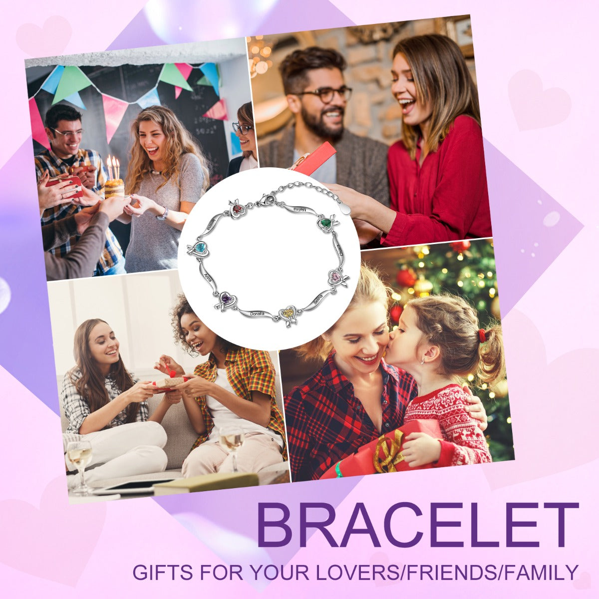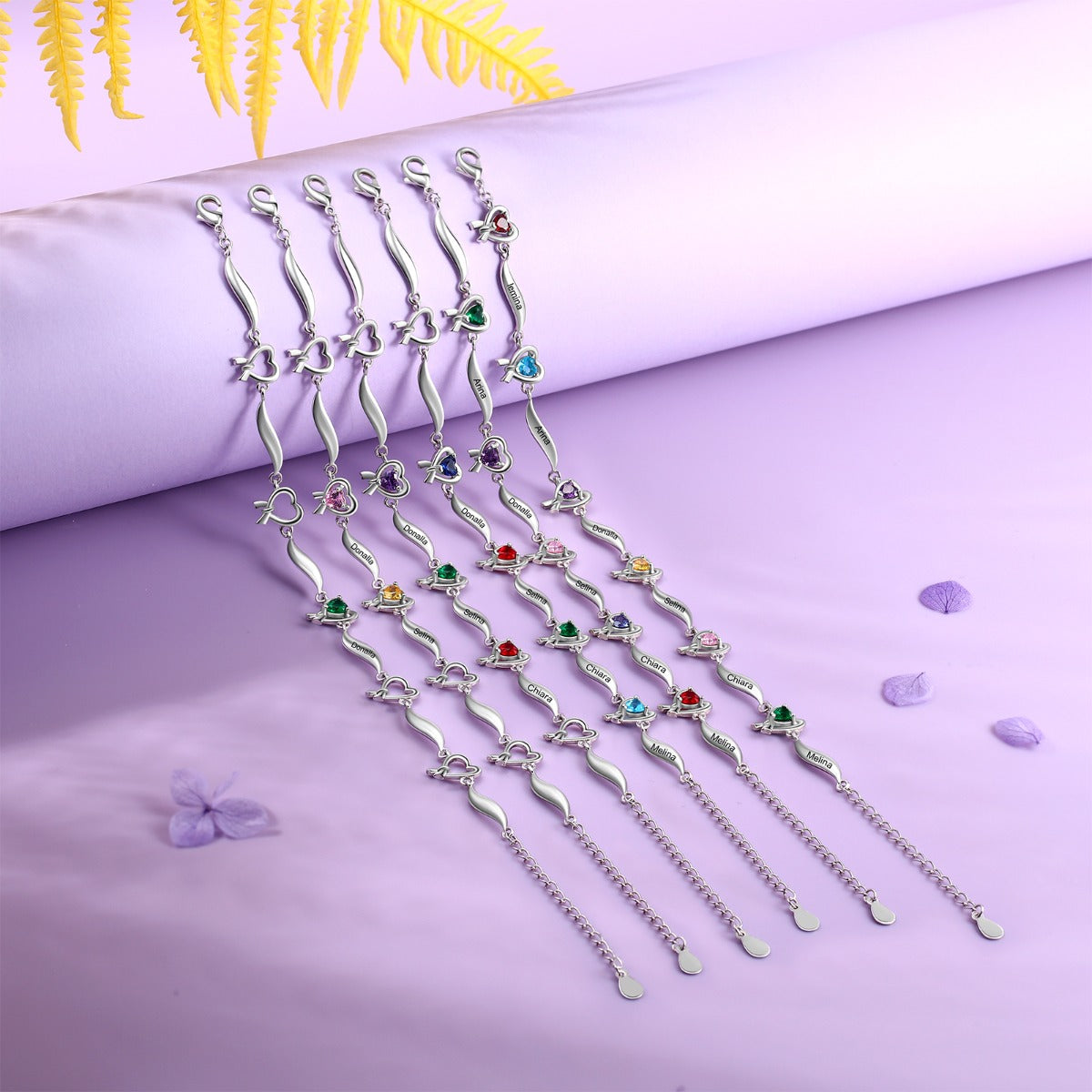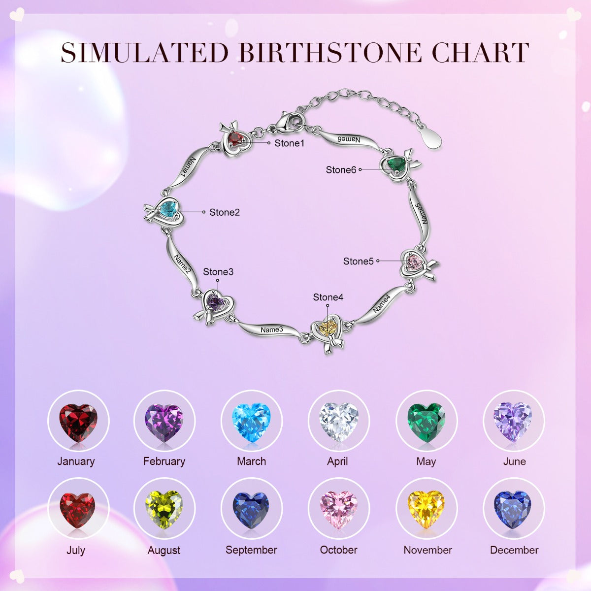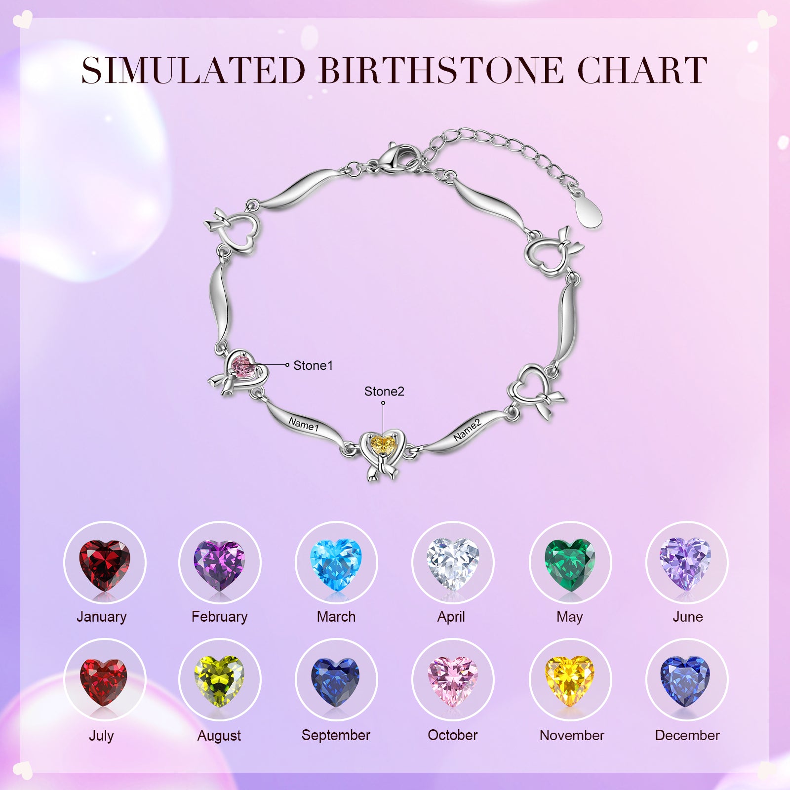 Rhodium Plated Heart Shape Birthstone Bracelet