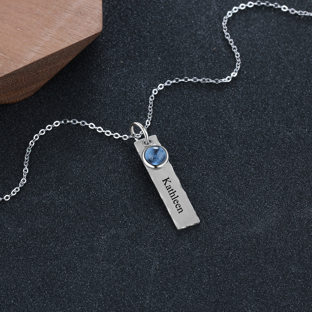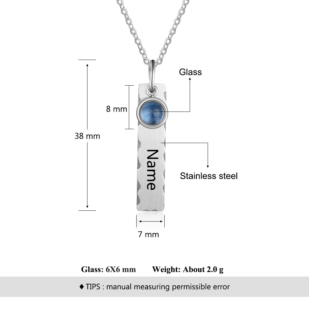 Birthstone & Engraved Stainless Steel Necklace