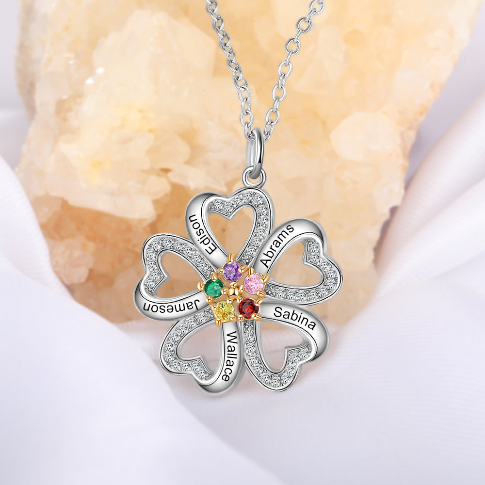 S925 Silver Heart Shape Flower Pendant Necklace