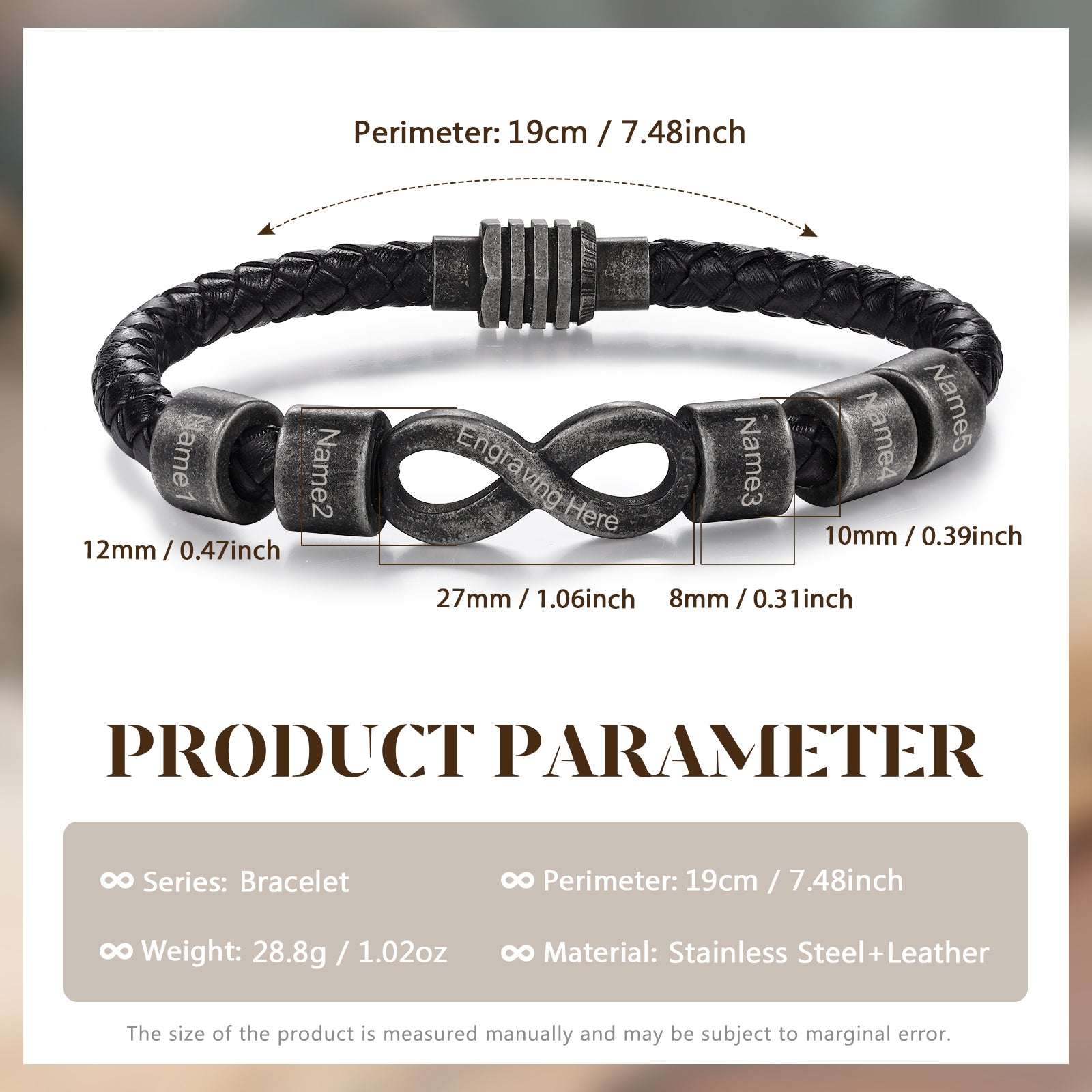 Material: Stainless Steel + Leather