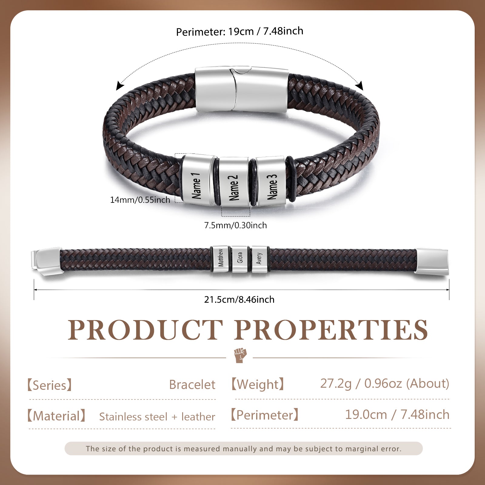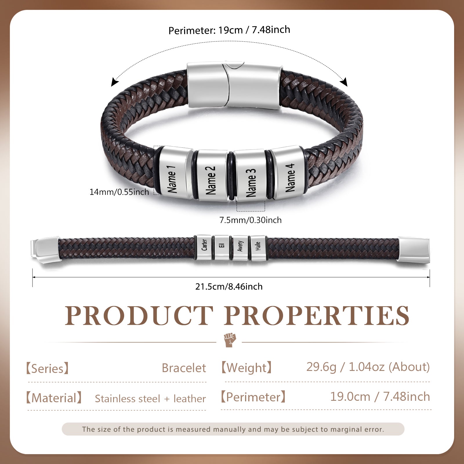 Custom Stainless Steel Leather Bracelet