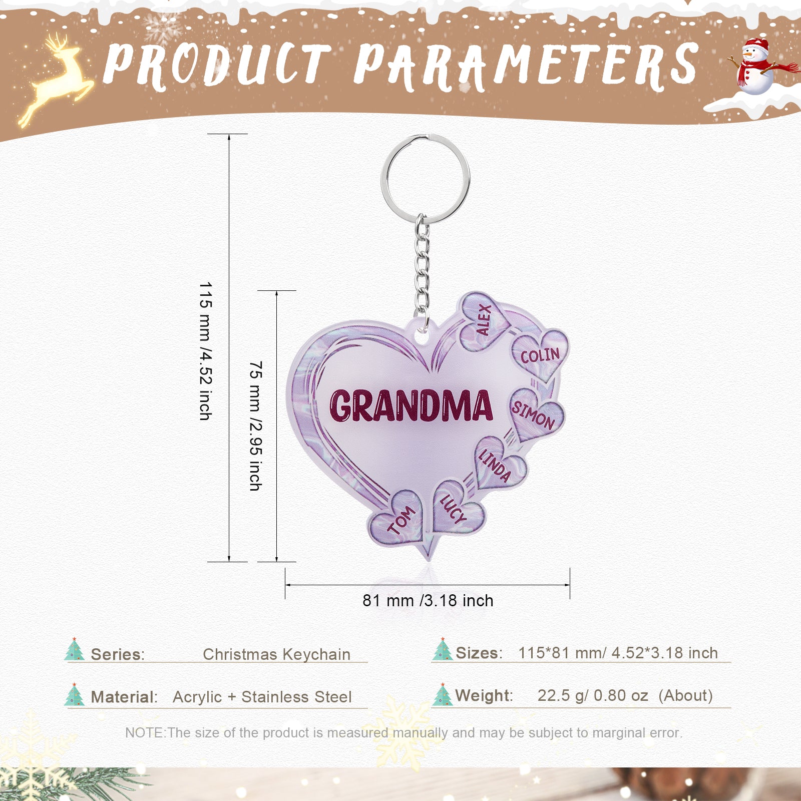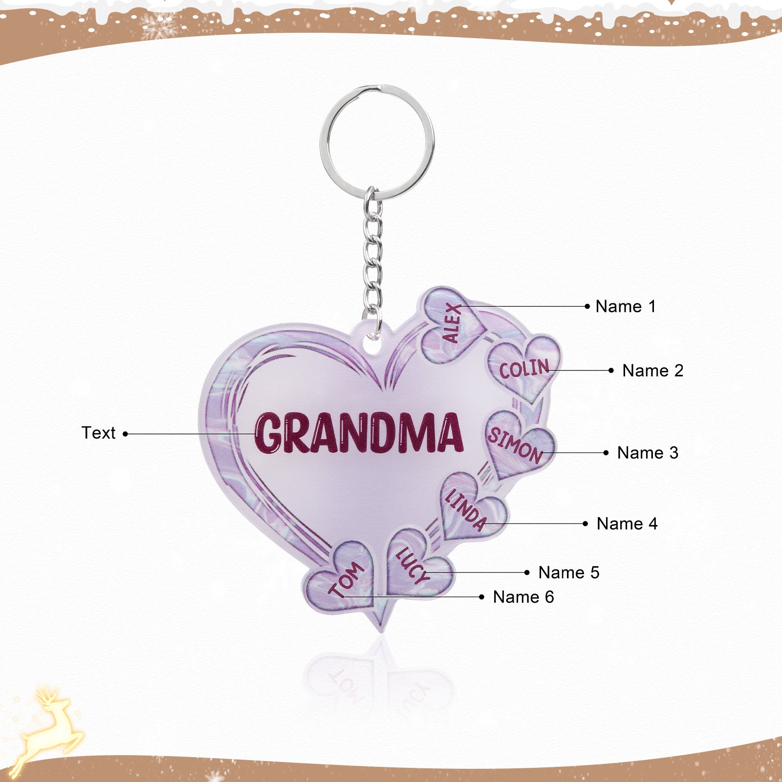 Christmas Decoration Custom Acrylic Name Heart Keychain