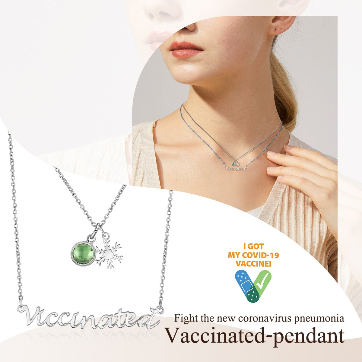 Rhodium Plated Vaccination Name Necklace