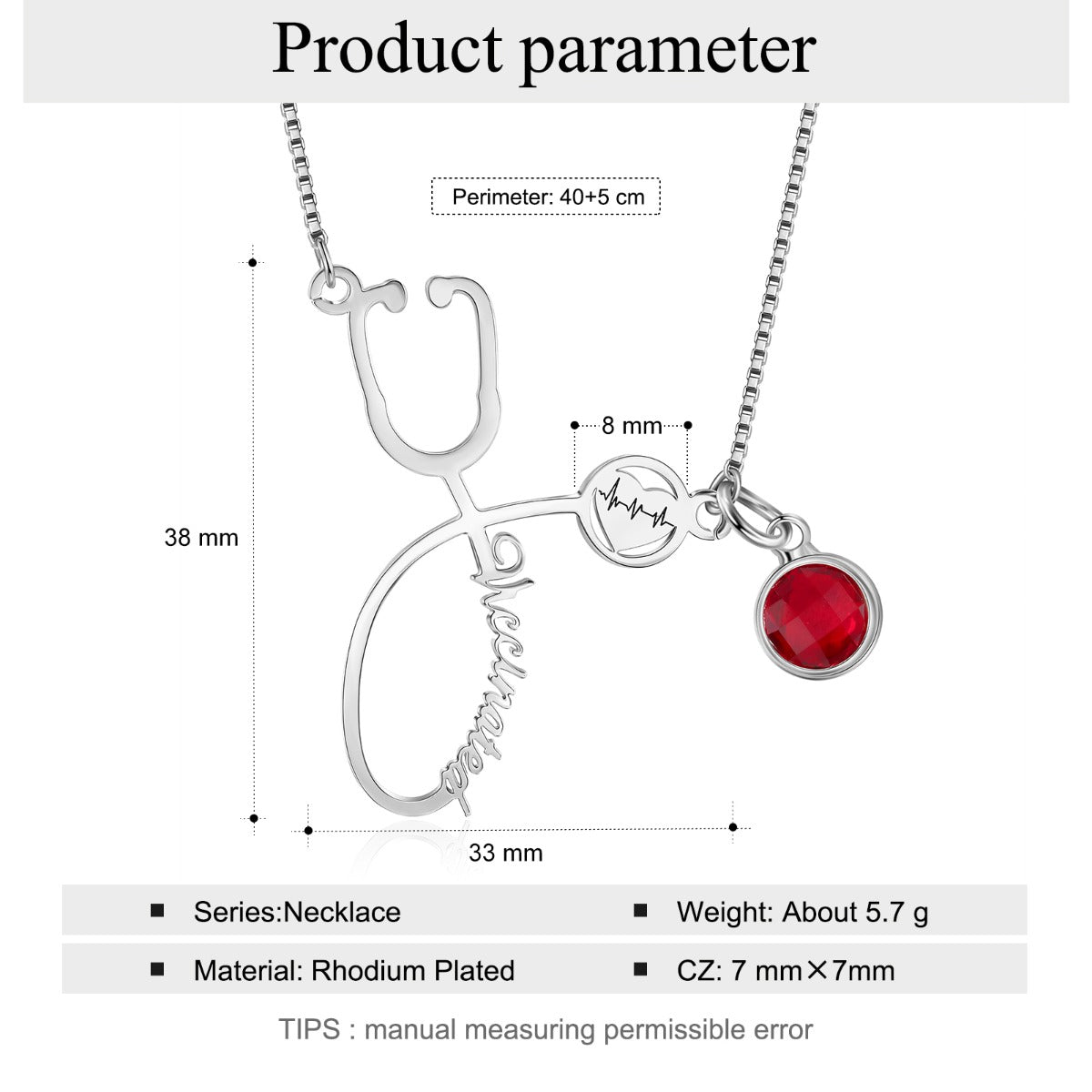 Rhodium Plated Vaccination Name Necklace