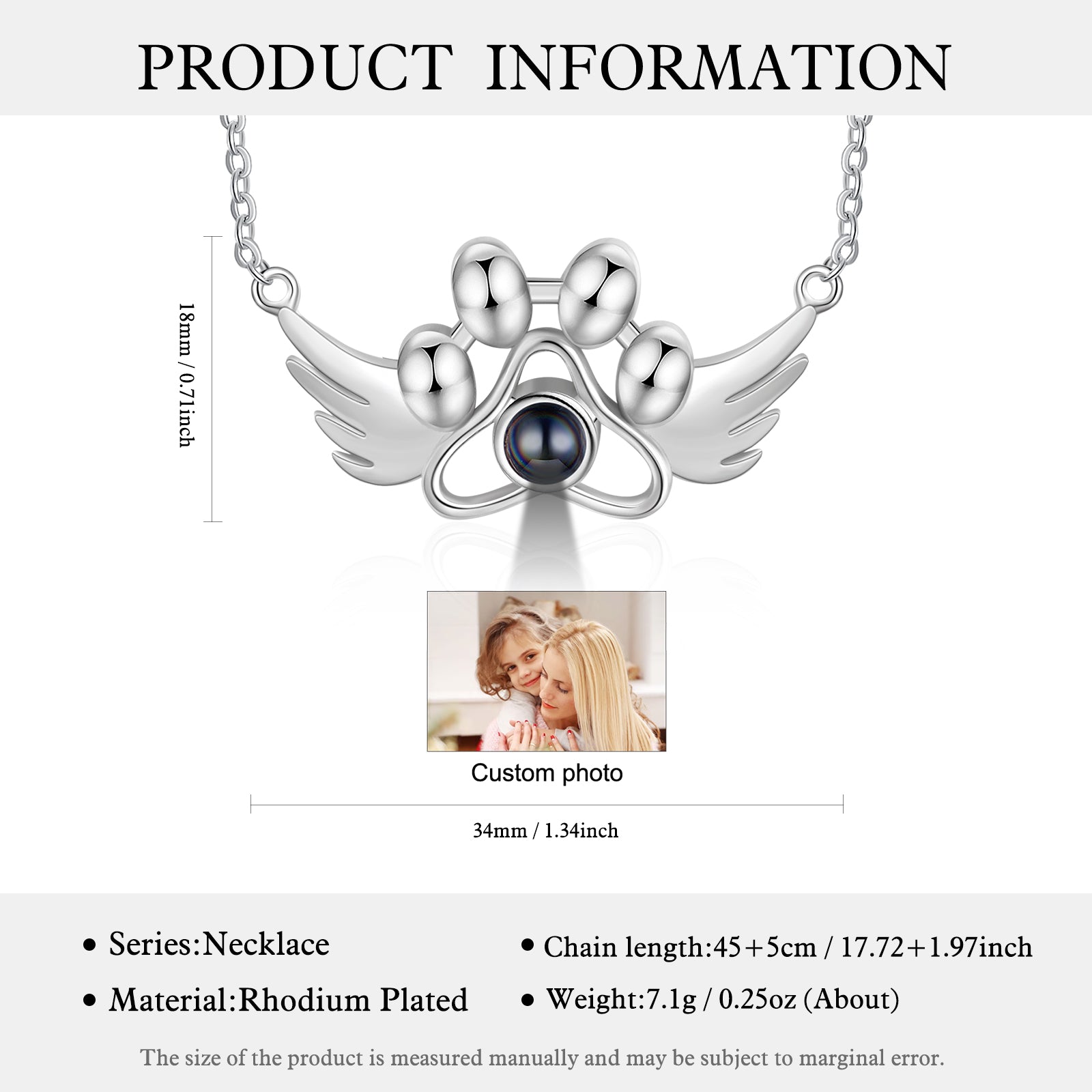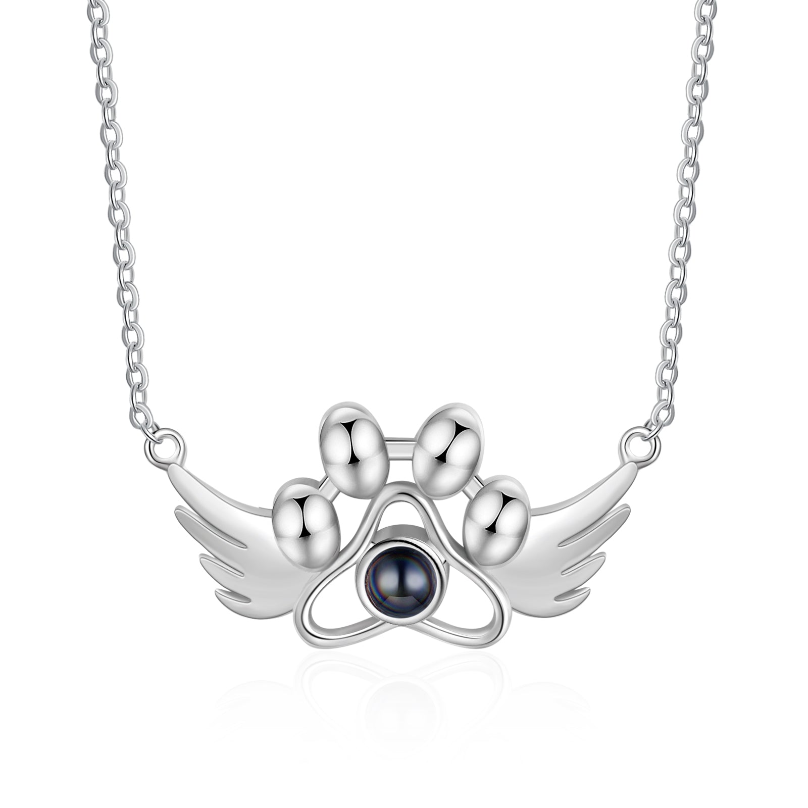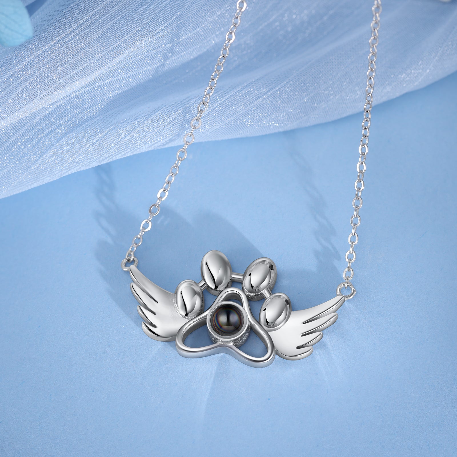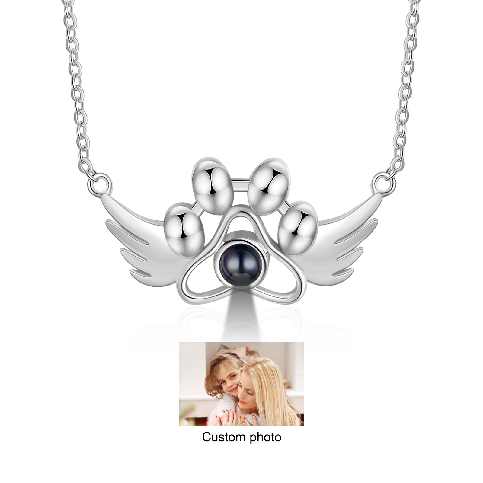 Personalized Photo Projection Paw Necklace with Angel Wing